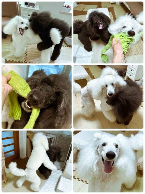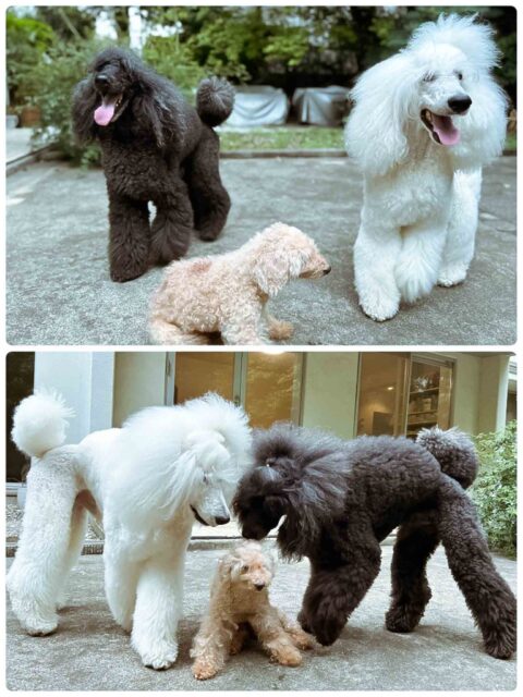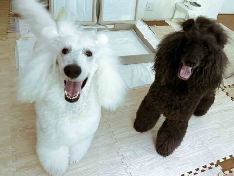 ボクたちはスタンダードプードルのアース(white)とアーク(Black)です💞