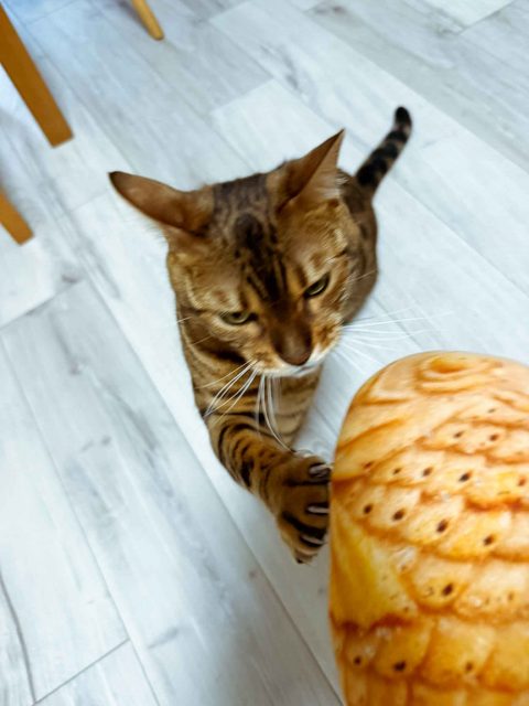 お馴染み🐟たい焼きくんのおもちゃで、追いかけっこ😸