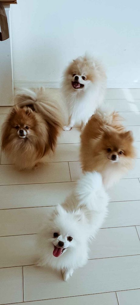 今回担当させて頂きました、ポメラニアンのたぬきちちゃん、ゆきおくん、ぶんぶくくん、おもちちゃんです。