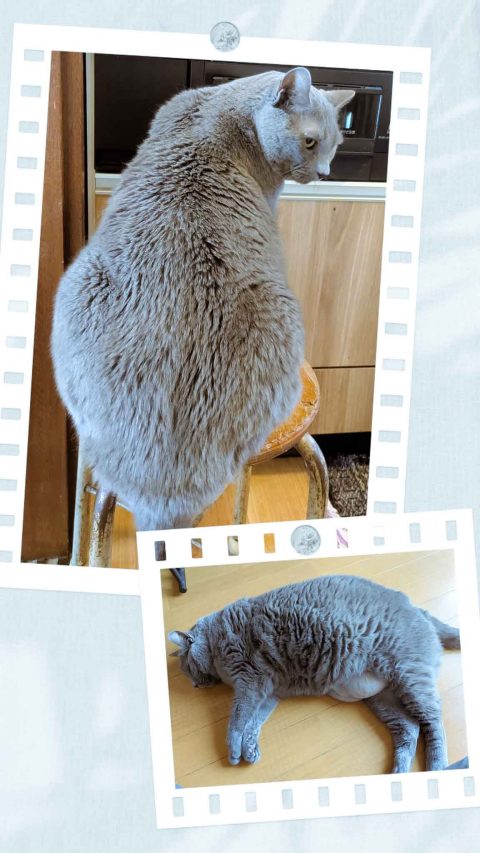 キッチンの椅子に飛び乗って、用意されるご飯待ち中もゴロゴロ