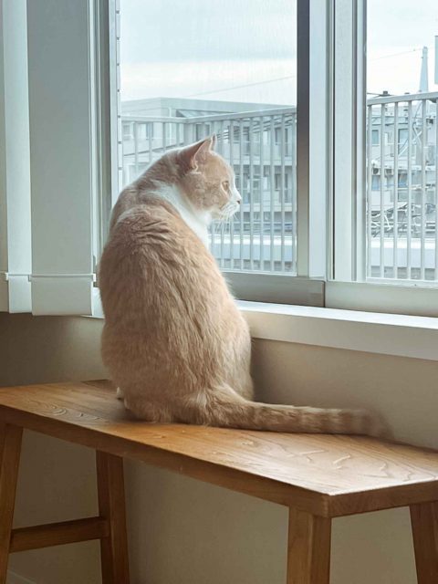 お遊びの途中にお外が気になり、鳥さんを眺めてました。