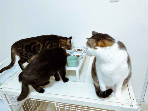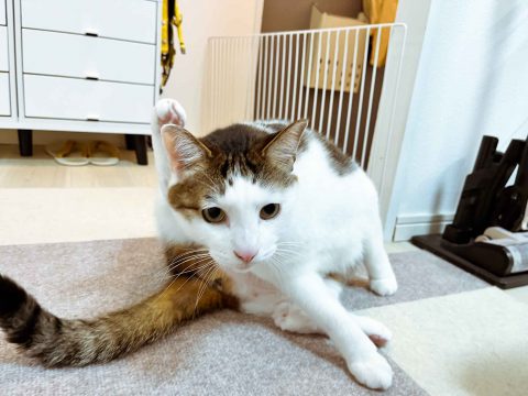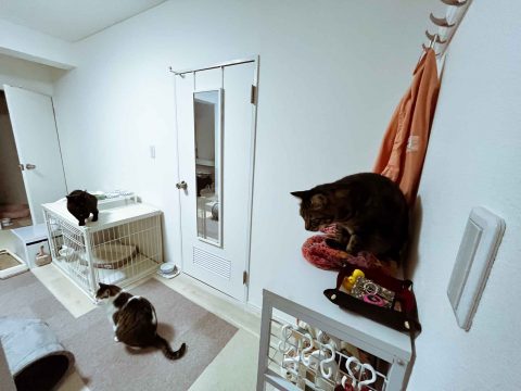 猫ちゃん3匹と元保護犬チワワちゃんの家族はみんな仲良し🎶お世話にうかがうと、猫ちゃん達のお出迎えです。