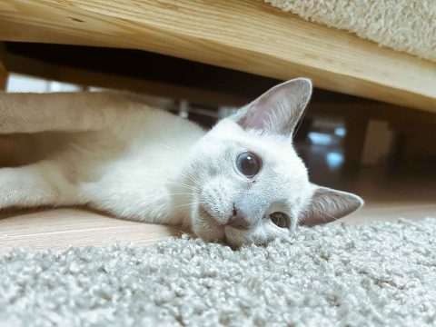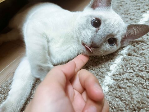 白い被毛に少しグレーがかったブルーが所々入っており珍しいカラーに加え、とっても綺麗な被毛です😌