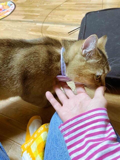 初めましてのシッターの手にもすっと乗ってきてくれる