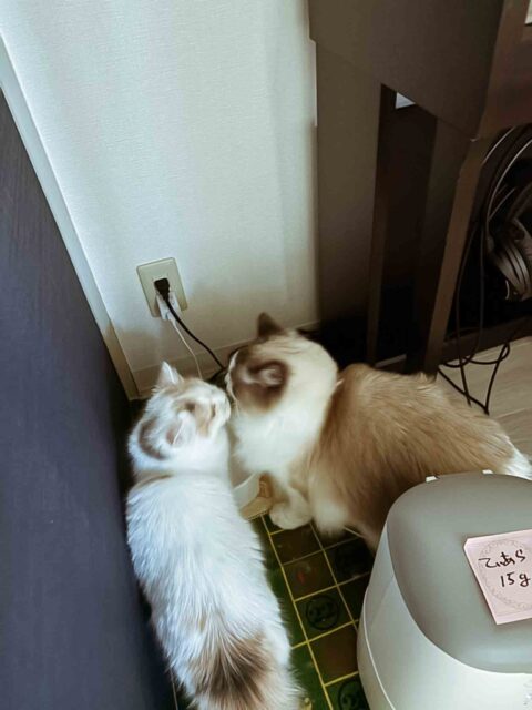 このお家の猫さん達は距離をとりながら見守りをしてくださる女神様のような子達です😊