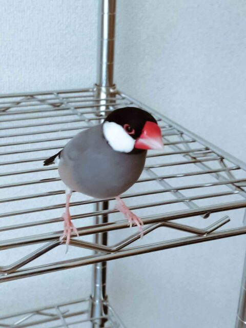 こてつくんは、赤いくちばしが目を引くとてもかっこいい文鳥さん😊
