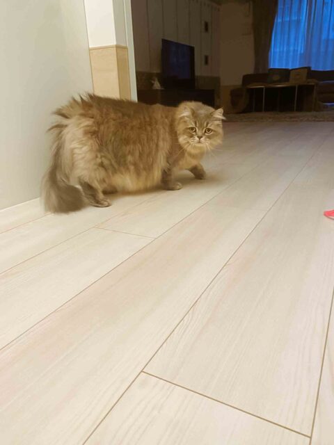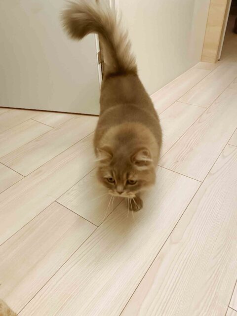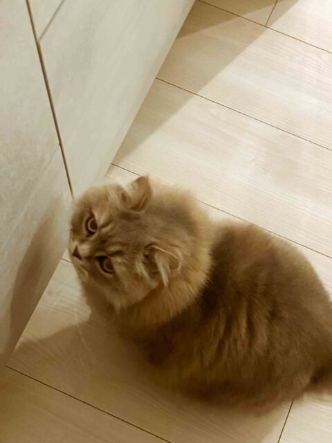 「おじゃましますよ〜こんにちは!」と入室させて頂くと『いらっしゃいませ!」と玄関でお出迎えしてくれたスコッティシュフォールドのごまおくん💕