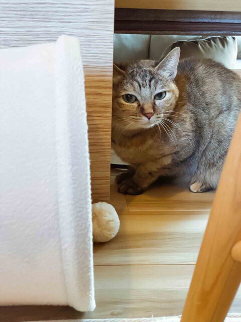 じゃじゃーん‼ スーパーシャイなブリティッシュショートヘアのうずらくんが隠れています👀