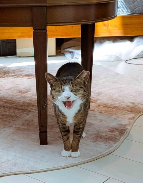 ニャーニャー言いながら、