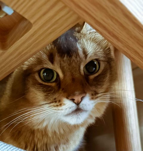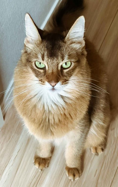 玄関を開けると、毎回「誰にゃ?」と見つめてくるソマリ猫のダダくん。
