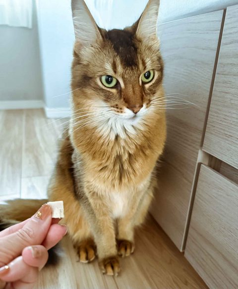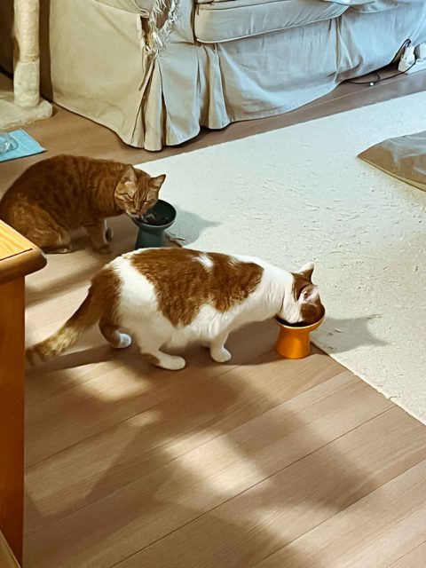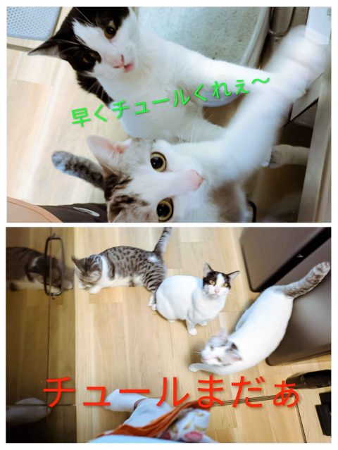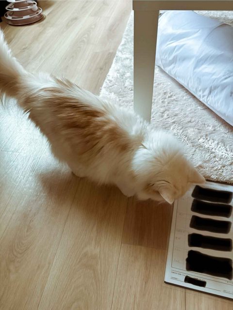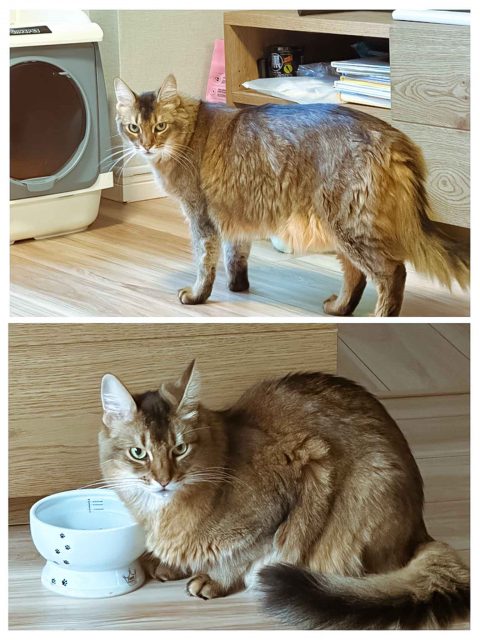 見ている前ではなかなか食べず、「今はそういう気分じゃないにゃ」とそっぽを向かれてしまいます。