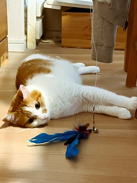 でもお世話に伺うと、ひとりぼっちで寂しかったのか「にゃ〜ん」と寄ってきてくれたと思ったら、すぐにベッドの下に避難(笑)