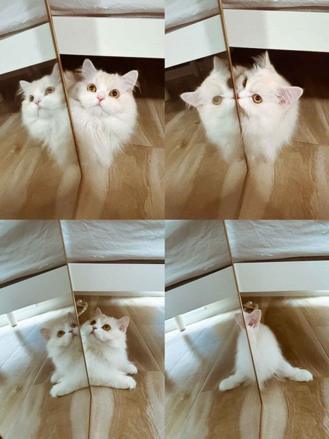 鏡の後ろから、ひょっこりこちらを覗くすももちゃん🍀