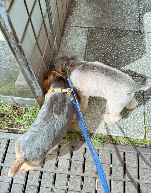 ご飯の後はお散歩でしたが、私が2匹一緒にお散歩をした事がなかったので、私は一匹ずつでお散歩をさせて頂きました🐕️