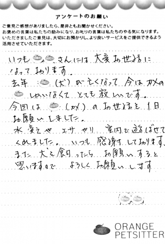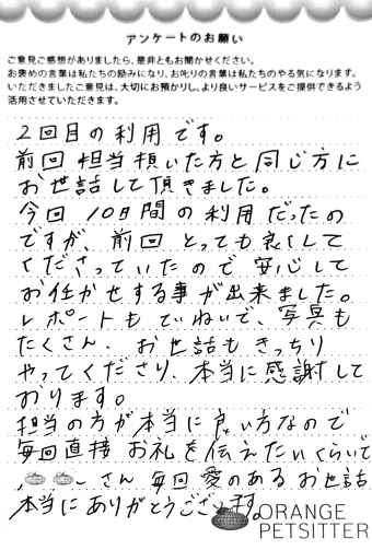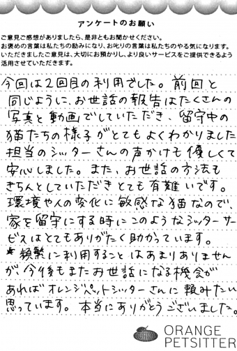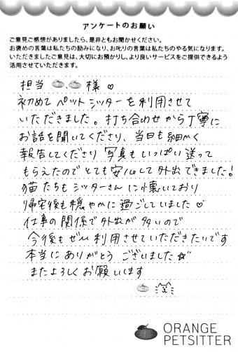 オレンジペットシッターでは、定期的にアンケートを実施。