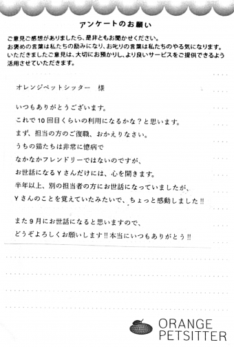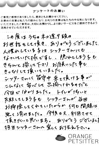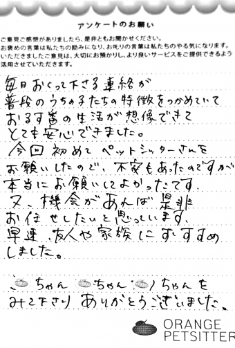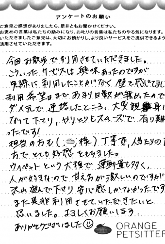 オレンジペットシッターでは、定期的にアンケートを実施。